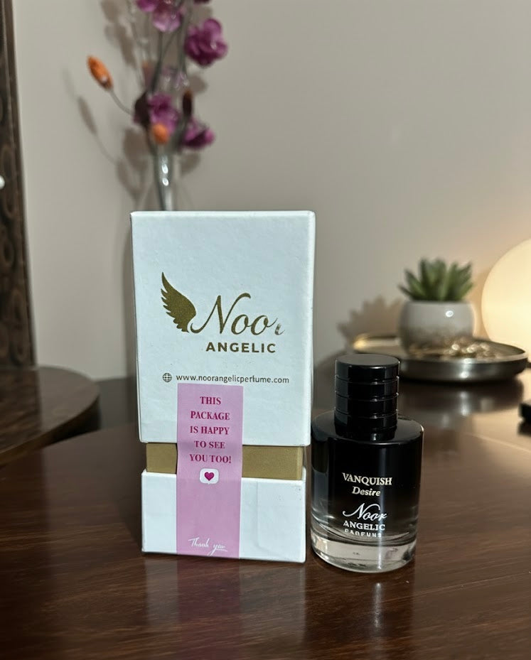 “VANQUISH DesireNoor” is a luxurious, angelic fragrance that blends soft florals, warm musks, and radiant notes to create an elegant, uplifting scent.
